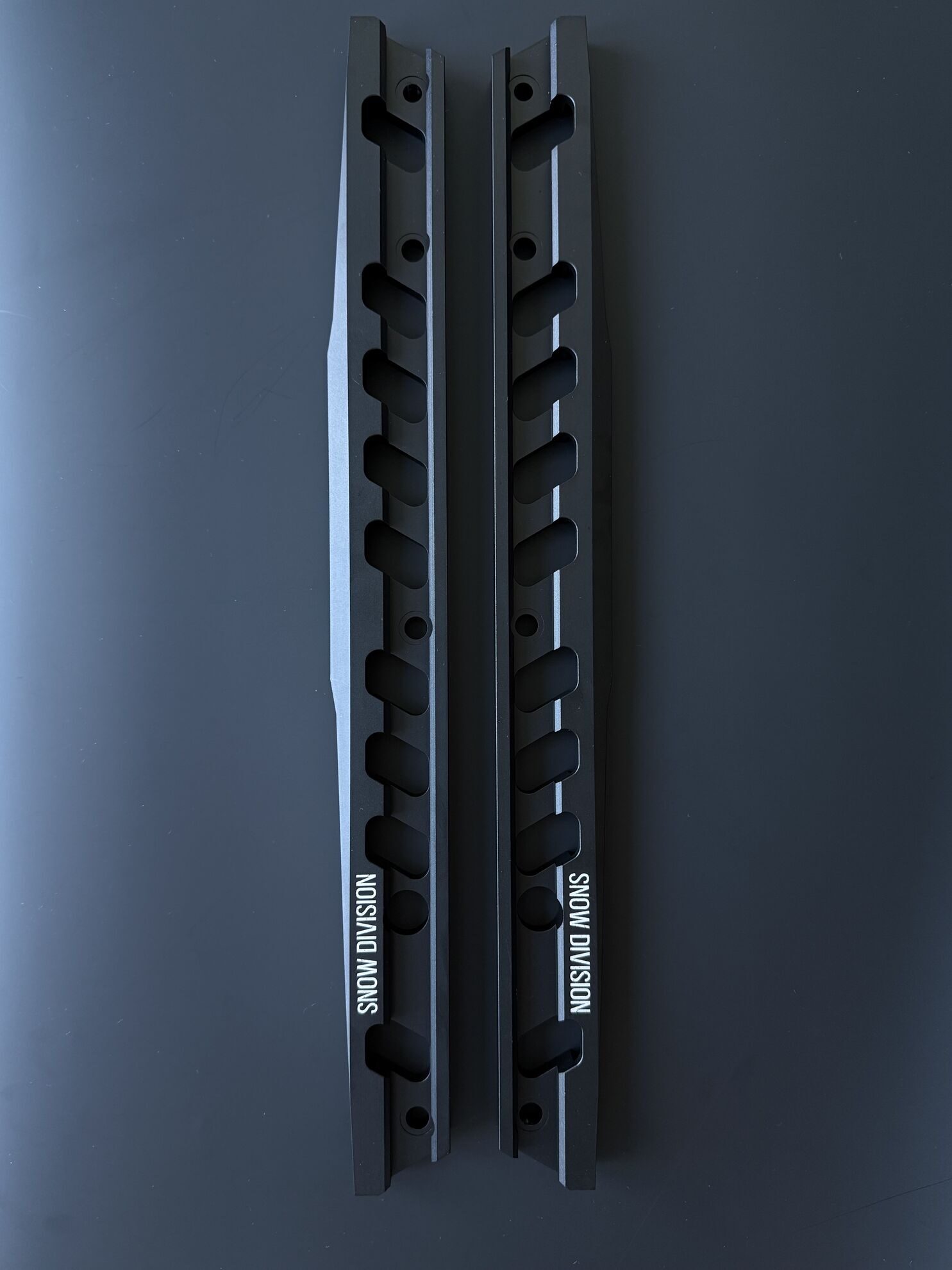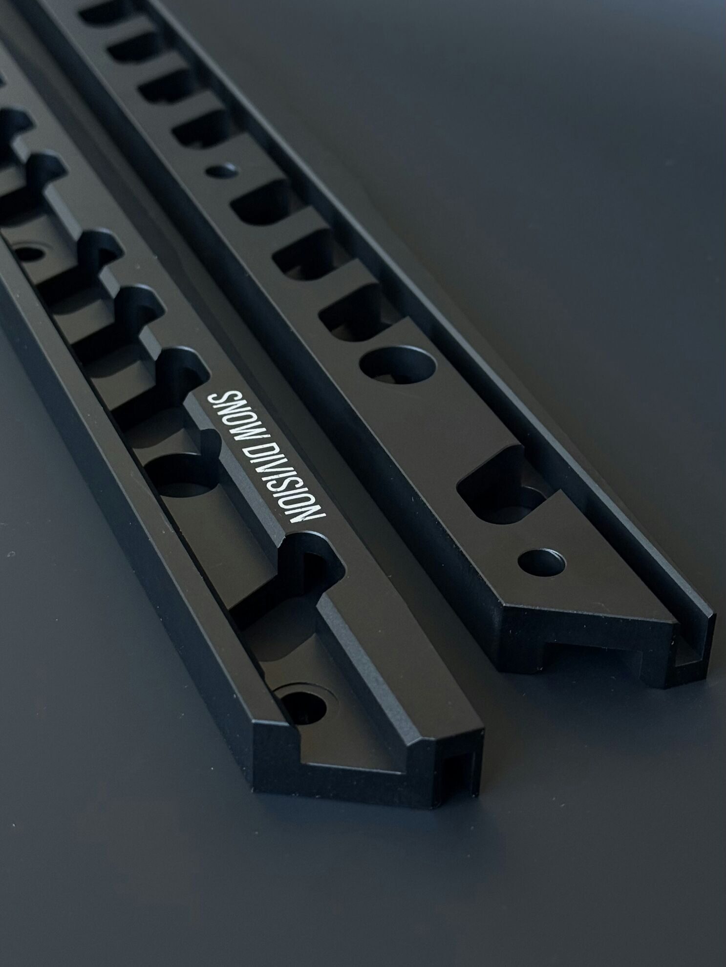 Усилитель рельс Snow Division Rail Brace выполнен из прочного авиационного алюминия 6061-T6 и имеет чёрное матовое твёрдое покрытие (холодное анодирование).